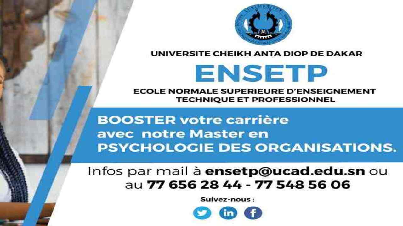 L’Ecole Normale Supérieure d’Enseignement Technique et Professionnel (ENSETP) de l’Université Cheikh Anta Diop de Dakar, organise des concours directs et professionnels de recrutement pour la formation de professeurs d’enseignement moyen technique, de professeurs d’enseignement secondaire et de psychologues-conseillers en orientation scolaire et professionnelle et d’inspecteurs de Spécialité.